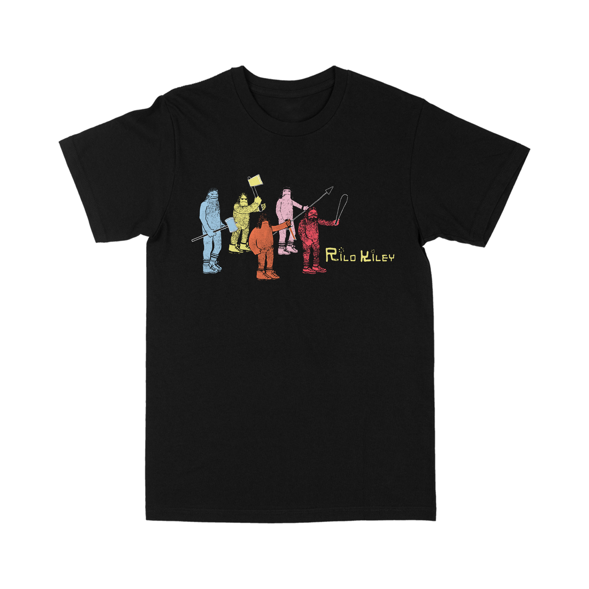 "Robots" design printed on a 100% cotton, black t-shirt.